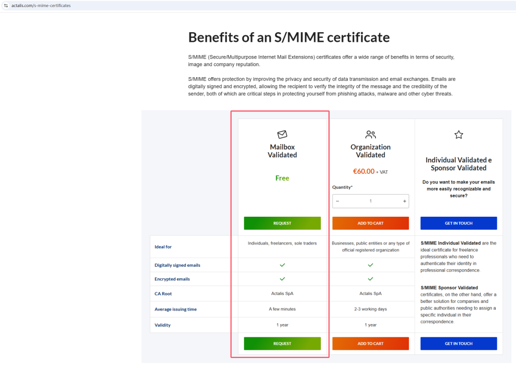 申请地址:https://www.actalis.com/s-mime-certificates