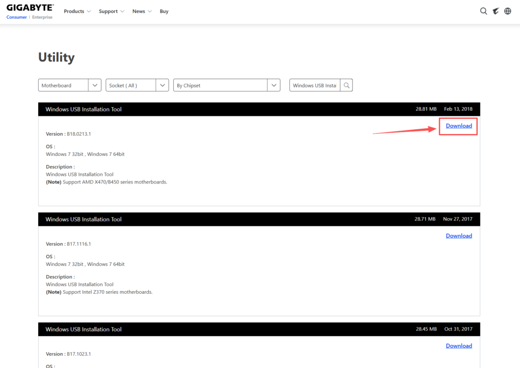 在技嘉官网下载这个修复工具,下面是下载页面的链接:https://www.gigabyte.com/Support/Utility?kw=Windows+USB+Installation+Tool&p=1